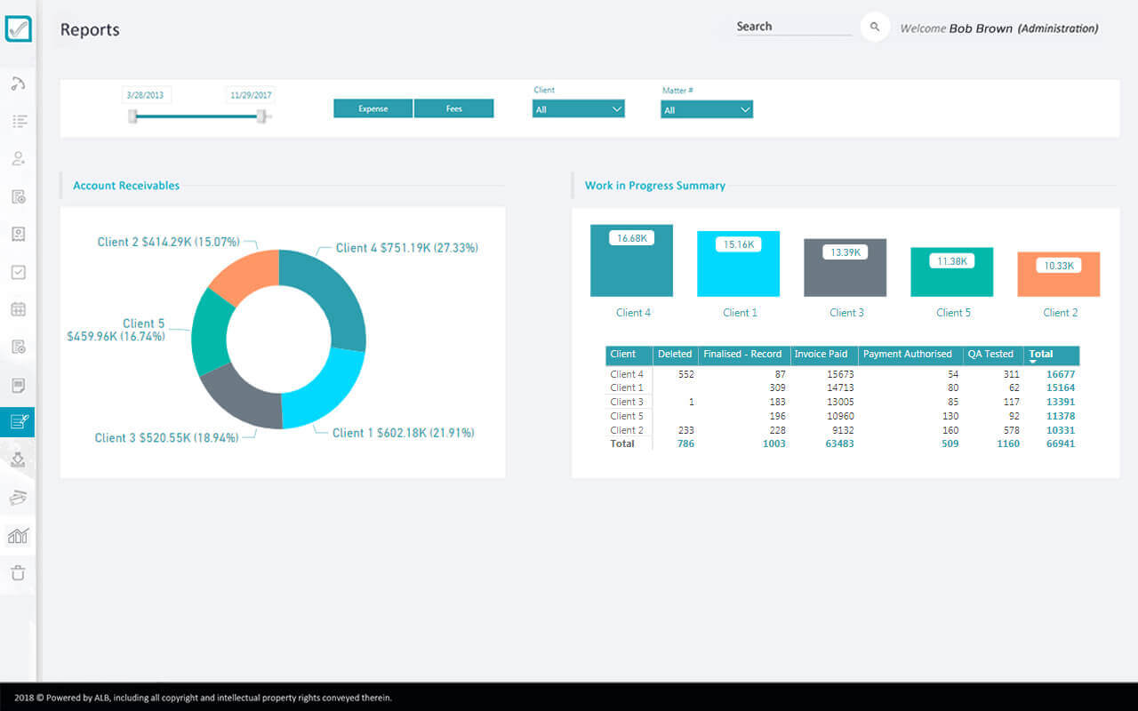 Work in Progress reports are generated on a set frequency so that the clients are updated regularly on the amount of work that has been done by the law firms.